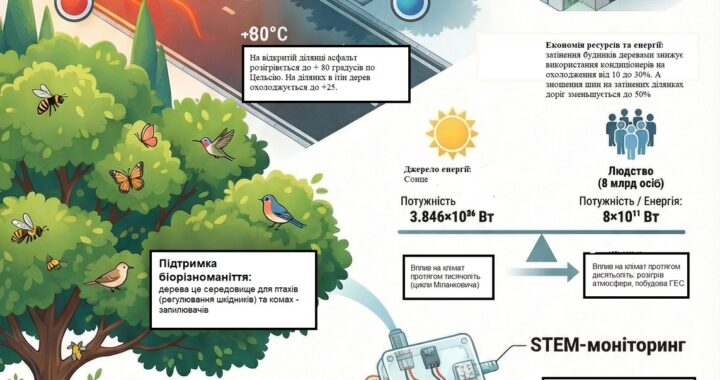 Ми об’єднали Астрономію, Екологію та Технології в одну круту систему. Це не просто теорія, а практичні рішення: від вимірювання температури асфальту сенсорами до відновлення зелених зон наших міст.