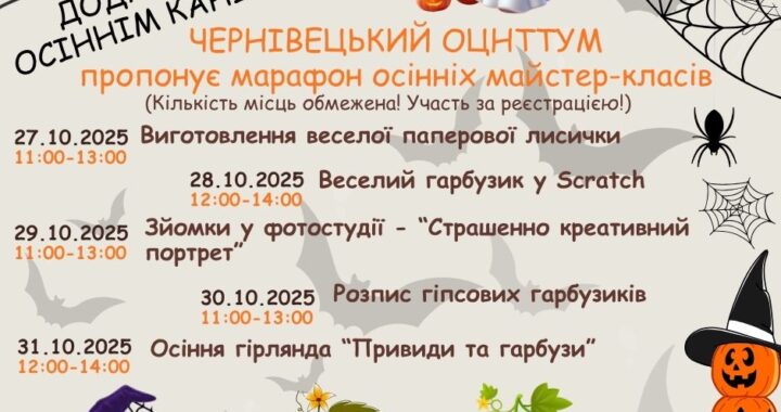 Чернівецький обласний центр науково-технічної творчості учнівської молоді пропонує на осінніх канікулах цікаву та веселе серію майстер-класів